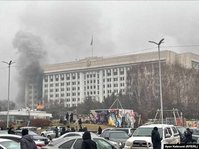 Тоқаев елге "террористік бандалар" шабуыл жасады деп, Ресейдің ықпалы мол ҰҚШҰ ұйымынан әскери көмек сұрады. Қазақстан президенті "террористік бандаларды" нақты атамады. ІІМ "18 полицей мен ұлттық гвардия сарбазы қаза болды" деді. Алматы полициясы департамент ғимаратына шабуылдаған ондаған адамның өлтірілгенін хабарлады.